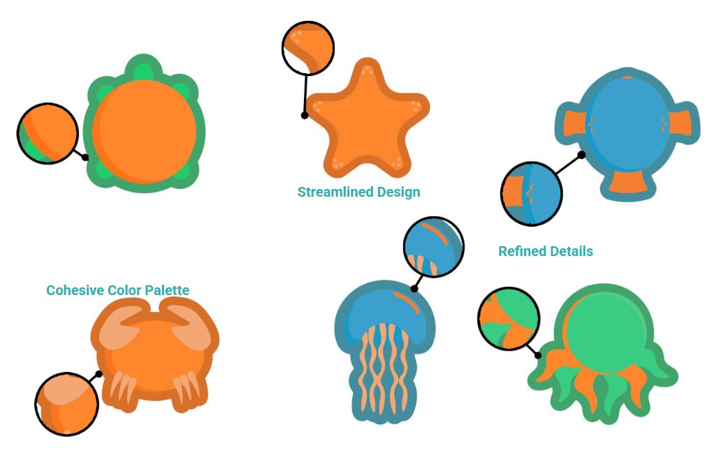 I had begun to feel confident about my designs right when the client rejected them. After a brief moment of complete and utter despair, I asked for some clarification. We came to the conclusion that the main issue was that they didn’t look like an intentional icon set. After making some revisions and choosing a clear color palette, my client loved them.